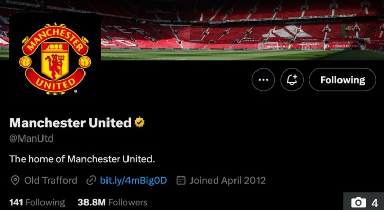 8月28日讯 据《太阳报》报道,曼联在被英乙球队格林斯比淘汰出联赛杯后不久,俱乐部对官方X账号简介进行了重大更改。